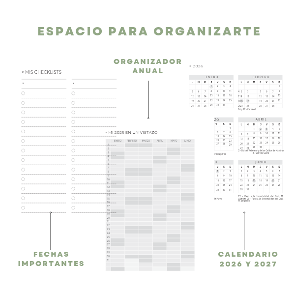 - La única agenda con 13 meses (¡incluye enero 2027!)